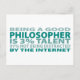 Att vara Bra filosof är 3 procent talent och 97 procent inte distraherat av Internet. Om filosofin är din hobby, ditt yrke eller din besatthet, visa den med underbara filosofiska t-shirts, muggar, klistermärken med mera. De är också underbara gåvor till andra filosofiska fläkt!
