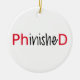 Phinished ordkonst, textdesignen för PhD avlägger Julgransprydnad Keramik