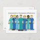 En rad tecknader som bär skrubbar och står mot en skarp vit bakgrund. Orden "Grattisar om gradering som flebotomist" åtföljer bilden.