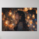 Detaljerad animerad målning av en vacker ung kvinna som vrider sig genom ett mörk fyllt med hänglyktor. Skapad med generativa algoritmer och Photoshop. Det här är ytterligare 100 % originaldesign för Snughamster.