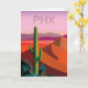 Denna design är en samtida affisch med ett enkelt grafiskt uttryck av öknen landskap i varma rött, rosor och lilor med saguarokaktusen i förgrund. Textförkortningen "PHX" visas på bästa av affischen och "Arizona" i liten vittyp på grund.