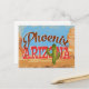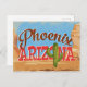 Phoenix Arizona neo vintage resor poster väggkonst i tecknad retro stil med öknen, en kaktus och röd sten.