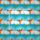 Fantastiskt mönster har en brandfågel av Myth och Magic som stigning in i himlar med damgnistor. Fågeln Phoenix är född ur askan av dess pyre. Born i lågor, en hoppsymbol och en ny början.Vibrant orange och guld med en aning indigo blå på vinge spetsar över ett akvarium blå himmel och vita moln
