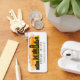 Den rektangulära aluminiumklisterkedjan har Phoenix, Arizona city skyline silhouette med solnedsatt vattenfärg stänk bakgrund och koordinater för latitud och longitud karta.