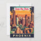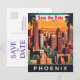 Ge ditt bröllop en varm ökenkänsla med denna Phoenix-inbjudan som visar en retroinspirerad palmlinjad siluett. Denna högkvalitativa klassiska turistkonst ger en charm från mitten av förra seklet som passar perfekt för par med en längtan efter äventyr.