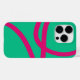 Abstract minimalist phone case featuring bright pink curved lines over a bold green background. Eye-catching and modern, this design protects your iPhone while making a strong artistic statement. Perfect for creative and trendy interiors.
