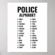 Öka ditt utrymme med den här Poster av telefonalfabet för polisen, designat för professioneller i tillsatta lagar, avsändare, förstahandssvarare och kommunikationsentusiaster. Detta tydliga och lättlästa diagram visningar det fonetiska alfabet som vanligen används i kommunikationer mellan polis och akut, skapar det som ett praktiskt och pedagogiskt tillägg till alla miljöer. Med fet typografi och en ren, minimalistisk utformning garanterar denna poster hög läsbarhet och fungerar som en underbar referens för dem som arbetar med allmän säkerhet, säkerhet och radioverksamhet. Oavsett om det gäller professionell använda eller biet, är denna poster både informativ och snyggt.
