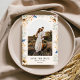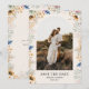 Skapa ditt eget bröllop spara datum med anpassningsbarnas foto inramat i en bågform med botanisk blommigt gräns.