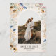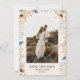 Skapa ditt eget bröllop spara datum med anpassningsbarnas foto inramat i en bågform med botanisk blommigt gräns.
