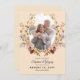 Foto Autumn Boho Wildblomma Bröllop spara datum i färglösa fall och ett pars foto på framsidan av Spara datumkortet.