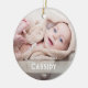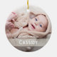 Ett baby första julprydnadsföremål med ditt foto och året i ett minimalistiskt format med vit text. Lägg helt enkelt till ditt foto och året, lägg till det här prydnadsämnet i din vagn och njut av den här keepausen på träd i åratal till komen. Photo Baby 1:a julklapp Ceramisk prydnadsföremål Holiday Design | ©Melissa Patton - Designer
