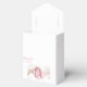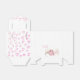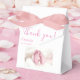En favoritbox för fotobabydusch. Tack för elegantens skripttypografi. Anpassa namn och datum. Rosa färg för en babydusch i flicka, party firande. Underbara party-leveranser för ett nyfödd bebis. Det finns ett hjärta mönster på baksidan av förmånslådan.