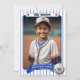 Anpassa dessa söta baseballfödelsedagsinbjudningar med spelarens favoritfoto. Basbollkortsdesignen har en bakgrund i streck och har röda stjärnor och en baseboll med MVP-åldern på födelsedagen. All text kan ändras för att passa dina behov.