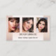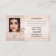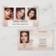 Ett möte affärskort för elegant med tre foton som du kan välja mellan (valfritt) och som har utformats av en persikodesign på rosan framtill. På baksidan finns utrymme för ett annat foto med linjer för att lägga till avtalade tider. Blomman på baksidan är en separat bild och kan dras, skalas eller också tas bort om du inte behöver den. Ett vackert affärskort för en skönare eller konstnär.