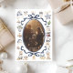A charming watercolor Christmas photo card framed with blue ribbons, nutcracker toys, and cozy winter details. Featuring soft cream and navy tones, this design captures a timeless blend of classic holiday tradition and elegant charm — perfect for sharing your family’s festive memories in refined Christmas style.