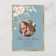 Photo Blue Rosa Blommigt Watercolor Bröllop Spara Datumet