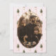 A soft blush pink Christmas invitation featuring a repeating potted tree pattern over candy-stripe watercolor background. Elegant and cozy, this design blends classic holiday charm with a refined pastel palette — perfect for intimate festive gatherings, winter soirées, or Christmas dinner parties with a modern vintage twist.