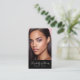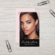 Present your best self to your clients. Your personalized photo, handwritten script calligraphy and simple graphic typography overlay a dramatic black background on this chic, elegant, modern business card. Personalize with your full name and business on the front. Fill in the back side with your custom qr code, contact info and phone/social media handles on the back light blush pink background. Makes a chic, professional, and stylish statement wherever you go.