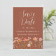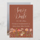 Celebrate your upcoming wedding with this Boho Fall Wildflower Meadow Terracotta Rust Beige Photo Save the Date, a beautiful fusion of autumnal warmth, rustic charm, and modern bohemian elegance. Designed with original watercolor artwork by artist Catherine Sweetman, this design captures the beauty of a wildflower meadow in full fall bloom.