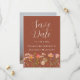 Hand-painted florals in terracotta, rust, orange, clay, peach, plum, coral, soft pink, and golden yellow evoke the cozy richness of the season, perfectly framing your favorite engagement photo. The beige modern typography pairs effortlessly with the warm terracotta background, creating a soft, sophisticated, and natural look.