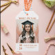 Få dina studenten-gåvor att framstå med vår fantastiska Seize framtida Student-märkre! Med en mörk boho Modern Abstrakt-bakgrund som är försedd med ett trendig Peach Fuzz-foto av en studenten-flicka, är dessa märkre eleganta och varma. Texten "Seize the Future Student" visas elegant i Burnt Sienna, vilket ger designen en något rikedom. Kortets baksida skryter med ett Abstrakt trendig Peach Fuzz mönster, som ger en klassisk och modern vädjan. Perfekt för att lägga till en personlig i dina gåvor är dessa märkre digitalt designade för enkelhet och sofistikering. Ta med vintagens och bioestetikens skönhet i tidslinjen med vår enkla, klassiska och Elegant-design. De ärliga tonerna och nyheterna om riken, inklusive orangens nyanser och bränd Sienna, framkallar en strålande men modern charm. Förbättra din studenten-presentupplevelse med dessa snyggt- och minnesvärda märkre!