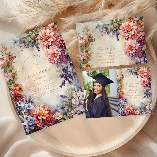 Inbjudan dina vänner och din familj för att fira student:s speciella dag med vår inbjudan till Photo Snyggt Wildblomskgarden Studenten! Den här inbjudan ger dig en fantastisk design av vildblommor och blandar naturens skönhet med ditt personliga foto. Den ger ett färskt, modernt utseende som är lika unikt som student. Den mjuka paletten, paletten Pastel färg och den delikata blommigten anger en ton för och elegant, medan anpassadet gör att du kan lägga till foto, student namn, studenten och händelseinformation. Oavsett om du är värd för en intim församling eller ett större firande är denna inbjudan perfekten för att markera framgången och få evenemanget att kännas oförglömligt. Beställ nu att skicka din inbjudan till snyggt och personlig studenten!