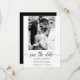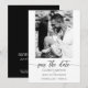 Svartvita bröllop spara datum-kort innehåller ditt foto och dina uppgifter i chicen med text på framsidan och mer bröllop på baksidan. Se till att kontrollera din beställning dubblan innan du lägger till den i din kundvagn eftersom det du ser på skärm är vad som skrivs ut. MER design i vår butik.