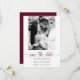 Burgundy bröllop spara datum-kort innehåller ditt foto och dina uppgifter i chicen med text på framsidan och mer information om bröllop på baksidan. Se till att kontrollera din beställning dubblan innan du lägger till den i din kundvagn eftersom det du ser på skärm är vad som skrivs ut. Live Design Service kan hjälpa dig med designlayouten om det behövs. MER design i vår butik.