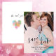 Foto Bröllop spara datum - Inbjudningskort för Bride och Groom designat med ditt favoritpars foto och information om annonsering. På framsidan finns bilden tillsammans med texten: Spara datum, Namn, Bröllop datum och formell inbjudan att följa. Den omvända texten innehåller: hon sade ja! på en vit bakgrund med känslig hjärtaccent. Om du vill anpassa dig infogar du din bild i vår enkla mall. Klicka på FYLL för att dölja. Sedan infogar du textinformationen och ersätter exemplet. Spara datum meddelande finns i både utskrift och digital nedladdning.