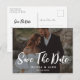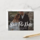 Elegant för vykort för Bröllop spara datum i Modern skript med fotomeddelande och ett vitt skript för snyggt tack vare vykortet. Perfekt för bröllop, födelsedagar, studenten och andra händelser.