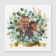 Foto- och textmall bröllop, nylweds, jubileumsartiklar med eukalyptus, grönt löv, med guld accenttema.