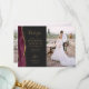 Skicka ett speciellt bröllop-tack till din familj och dina vänner med de här anpassningsbarna. På den lämnat visas ord "tack" i handskript av elegant guld-färgad typografi på en svart bakgrund på ett kortfattat, redigerbart tack till gästerna i bröllop i mönstertypsnitt, med namnen nedan. En burgundröd vattenfärgad agat gräns som trimmas med faux guld glitter dekorerar det lämnat kant. Baksidan ger utrymme för ett andra vågrät-foto.
