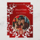 Den här eleganten innehåller en kinesisk bröllopsinbjudan ett runt foto omgivet av vit körsbärsfärs blommar grenar och en runt guld dubbla lyckosymbol på en skakande blommigt röd bakgrund. Namn i en elegant med klassiskt skript. Kinesisk bröllopsinbjudan eller teceremonin.