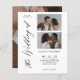 Den här elegantens minimalistiska bröllopsinbjudan är designad för att fira din speciella dag med sofistikering och stil. Med en ren, modern layout med en blandning av handskrivet skript och klassisk serif-typografi ger den ett tidslöst utseende av contemporaryn. Personlig med två fotosektioner och ett i bakgrunden ger den ett hjärtskärp som gör den unik för dig.