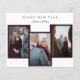 Budgeterad Elegant Nyårs 3-gratulationskort för fotokollage. På baksidan finns anpassningsbar-meddelande och foto som du även kan redigera. Har rött ram för foton. Designad för nyligen sysselsatt par eller gifta par, men kan även användas av familjer.