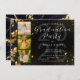Celebrate your graduate in style with this elegant black and gold graduation party invitation featuring sparkling confetti accents and space for three custom photos. A bold black background paired with shimmering gold elements gives this invite a sophisticated and festive look, while the modern typography highlights important event details. Perfect for high school or college graduates, this design allows you to personalize the name, date, time, and location to create a meaningful invitation for friends and family. With its refined layout and marble-style back, this invitation sets the tone for a memorable graduation celebration.