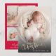 Sött helgdag Tema tillkännagivande för födelse har ditt favoritfoto på framsidan med God jul och namn i hälsning. Din baby födelsetal och 3 foton på baksidan. Ändra bakgrunden färg på baksidan med Redigera verktyg.