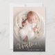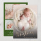 Sött helgdag Tema tillkännagivande för födelse har ditt favoritfoto på framsidan med God jul och namn i hälsning. Din baby födelsetal och 3 foton på baksidan. Ändra bakgrunden färg på baksidan med Redigera verktyg.