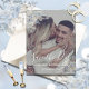 Personlig med ditt fotoval. Fina blå och elfenbensblommor accentuerar detta vackra "Spara datumet"-kort. Lägg till namn och datum för att anpassa den här söt snyggten "Spara datum". Enkel än elegant.