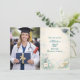 This elegant dentist graduation design features a soft botanical frame paired with dental symbols such as a white coat, dental tools, diploma scroll, and smiling tooth illustration. The calm green and ivory palette creates a polished yet welcoming look, perfect for celebrating dental school graduation, white coat milestones, or a dentist’s professional achievement. Fully customizable with names, dates, and event details.