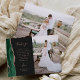 Skicka ett speciellt bröllop-tack till din familj och dina vänner med de här anpassningsbarna. På den lämnat visas ord "tack" i handskript av elegant ro-färgad typografi på en svart bakgrund på ett kortfattat, redigerbart tack till gästerna i bröllop i mönstertypsnitt, med namnen nedan. En havsfärgad agate i grönt som utlöstes i gräns med faux ro guld i dekorerar det lämnat kant. Baksidan ger utrymme för ett andra vågrät-foto.