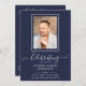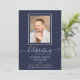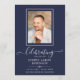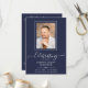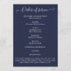 Anpassa detta enkla program och program för elegant med namn, foto och meddelande från din avlidna nära och kära. Ät och fira livet för din kära med den här moderna och snyggt mallen på klassisk marinblå bakgrund. Enkel att anpassa text och bild. Våra djupt kända kondoleanser och böner är med er under denna mycket svåra tid.