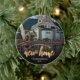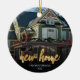 Minneshögtidlighålla er första jul i ert nya hem med denna vackra moderna keepsaksprydnad. I texten står det "Första julen i vårt nya hem" med ord "nya hem" i fotfolie av elegant guld. Byt ut exempelbilden mot ett foto av ditt nya hus och lägg till familjens efternamn i vitt sans serif-teckensnitt. Ett övertoningsfilter för mörk hjälper till att göra textpopup.