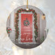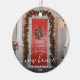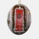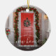 Minneshögtidlighålla er första jul i ert nya hem med denna vackra moderna keepsaksprydnad. Den vita texten lyder "Första julen i vårt nya hem", med ord "nya hem" i handskript för elegant med blommor före och efter. Byt ut exempelbilden mot ett foto av ditt nya hus och lägg till familjens efternamn och år. Ett övertoningsfilter för mörk hjälper till att göra textpopup.