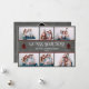 Det här roliga ansikte maskerar bildskärmskortet för julgranen med 6 av dina egna foton med känslan "Vi saknar ansikte!" kompletterad med rött buffelpläderat Julgranar på en grått-kritbakgrund. Baksidan av kortet säger: "Vi önskar er ett God jul och ett BÄTTRE nytt år!" Enkel och enkel att anpassa all text och lägga till egna foton med ansikte-masker!