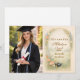Soft, romantic and timeless, this pastel botanical graduation design features a delicate oval wreath of blush roses, buttercream blooms, and airy blue florals framed with an elegant gold arch. A subtle parchment background and refined typography create a graceful, storybook aesthetic perfect for spring or summer celebrations. Finished with a rolled diploma tied in a soft blue ribbon, it feels elegant, feminine, and heirloom-inspired. Fully customizable for name, school, date, and event details — designed to work beautifully year after year.