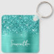 Photo Glittery Teal Turcos Glam Script Namn Nyckelring