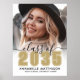 This simple and minimalist graduation party sign features a full-page photo with a soft white gradient at the bottom for a clean, modern look. Centered along the bottom, a large “Class of 2026” (or any year) stands out in a rich yellow gold tone that adds a polished, celebratory feel. Below it, the graduate’s name and school are displayed in crisp black fonts, creating a balanced and easy-to-read design.