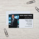 Replace the photo with your own, or with your logo on this gray and black business card for a security company. Very sharp and professional-looking.