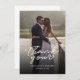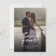 Ett underbart och tankeväckande sätt att tacka dina vänner, familj och medarbetare som tackade er för deras närvaro i din bröllopsdag med det här moderna fototacket som du kortar med skript med handskrivet "tack" och ett kärlek-hjärta.